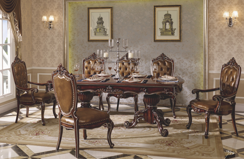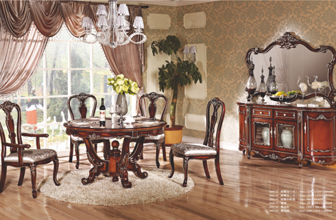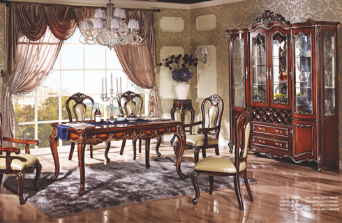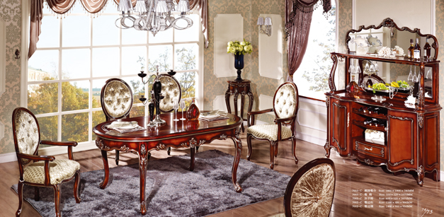 7001-C長餐臺+餐椅+扶手椅+酒柜 7006-C大餐臺+7011-C餐椅+扶手椅