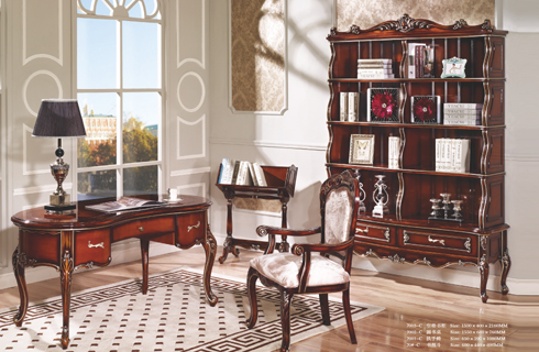 7001-C四門書柜+書桌+扶手椅+書報架 7001-C書桌+7007-C扶手椅