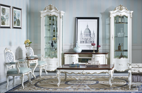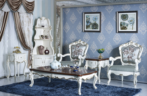 7001-C休閑椅+7002-C雙門裝飾柜+7005-C圓茶幾 | 3006-C沙發+橢圓茶幾+小方茶幾+轉動書架+書報架+兒童椅 |